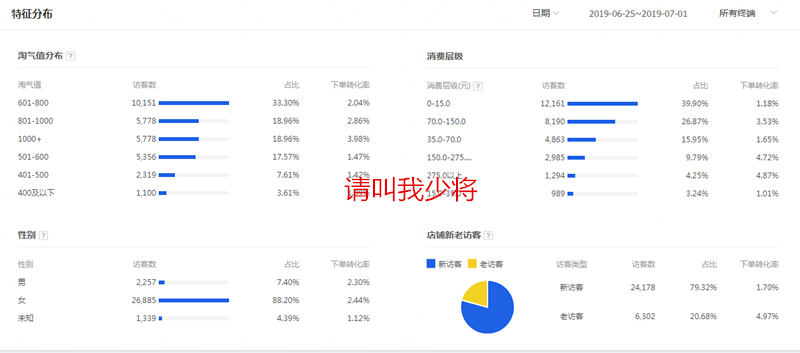 看全店的数据,如果店铺的主要流量都是集中在一款上面,或者店铺产品的人群基本上都差不多,这个时候就可以去参考。