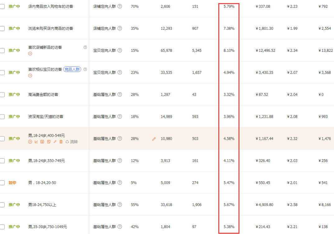 既然都知道流量精准度高能提高转化,要想做好流量精准度就要做好店铺的人群标签。上面也提到了,通过车子重点做人群,如果直通车不懂得做人群搜索是很难起来的。做人群标签还是要通过直通车去拉,不管是淘客还是啥都不可行。直通车做人群标签内容可翻看之前的文章。