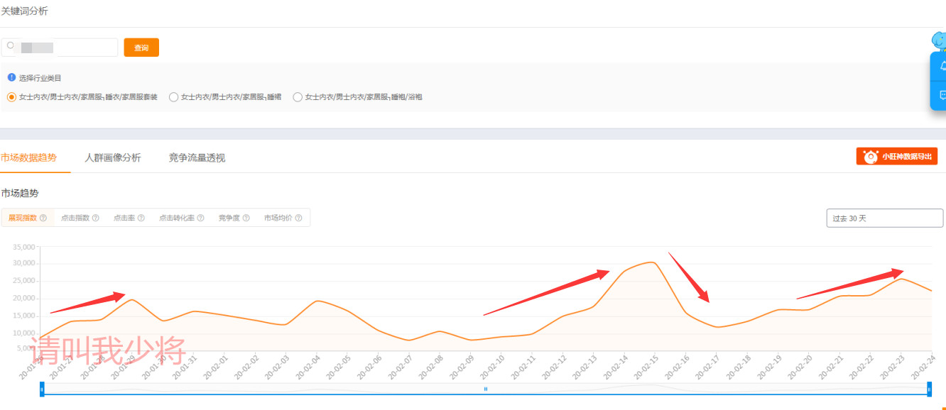 在准备开始操作之前,我们一定要通过市场分析,多观察宝贝关键词的流量趋势,过年期间什么趋势,年后流量上升期是什么时候等,找准切入时机,这个是至关重要的。当然如果你切入的晚点了也可以在利用其它策略去获取流量,比如利用折扣营销策略等。