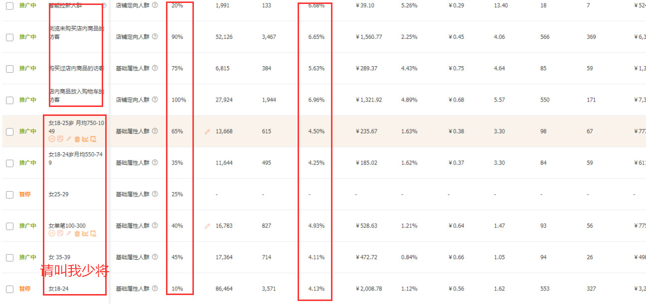 通过数据分析来进行人群标签组合测试,来逐步测试你的店铺的精准人群是哪些。