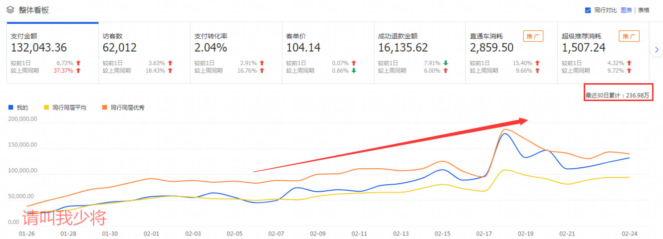 一天十多万销售额,直通车加大了投放,一天两千多,可以看下整体都是上升趋势。