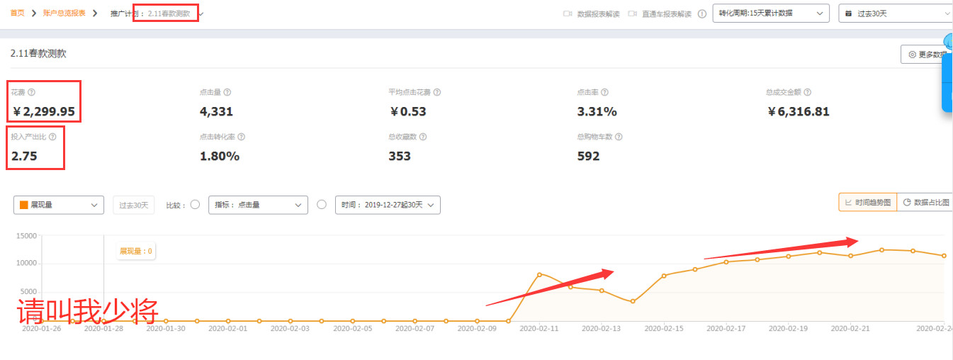 这个是新品计划,2.11开始推的计划,投放不多,投产数据还可以,目的是前期养权重。